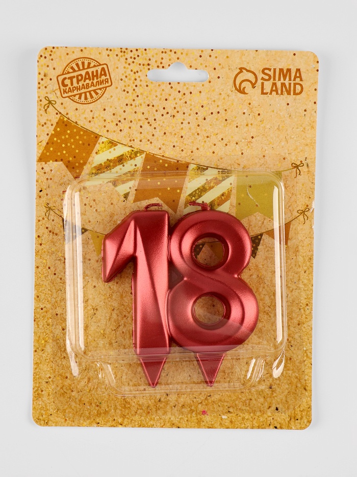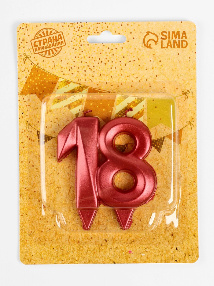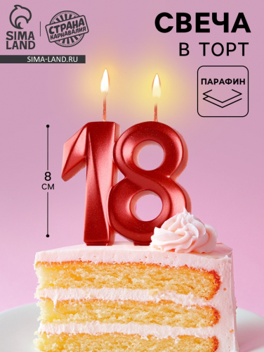 Свеча в торт юбилейная «Грань», цифра 18, красный металлик, 8 см