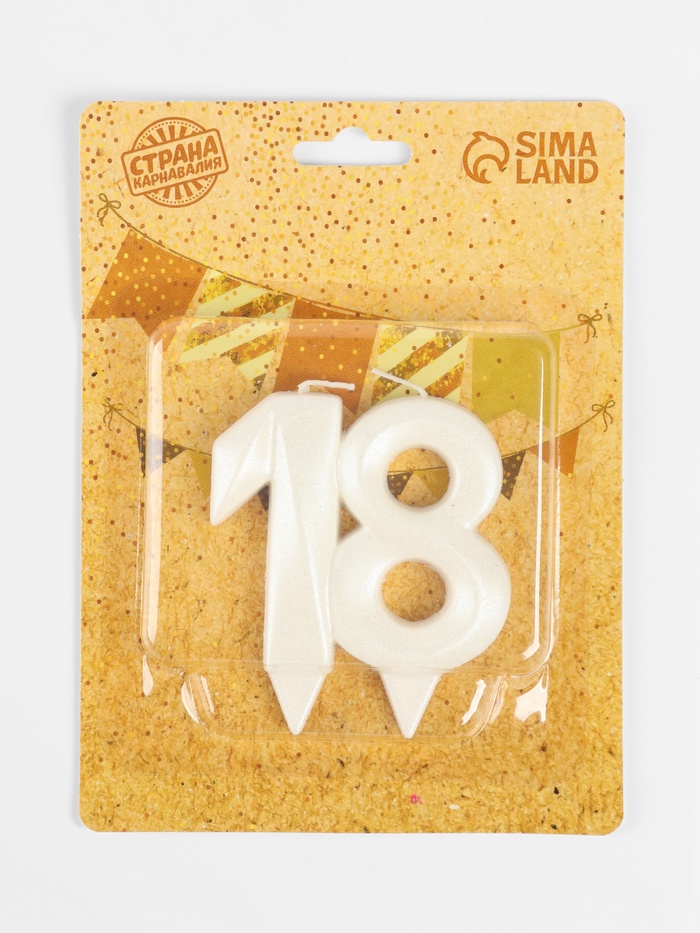 Свеча в торт юбилейная «Грань», цифра 18, жемчужный, 6.5 см
