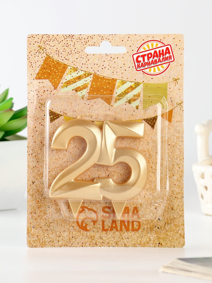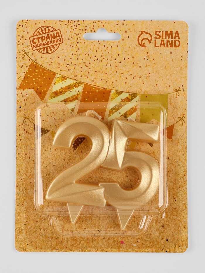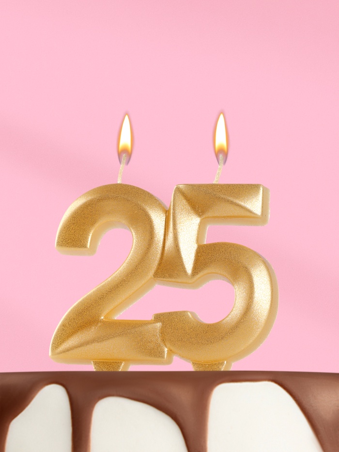 Свеча в торт юбилейная «Грань», цифра 25, золотой металлик, 6.5 см