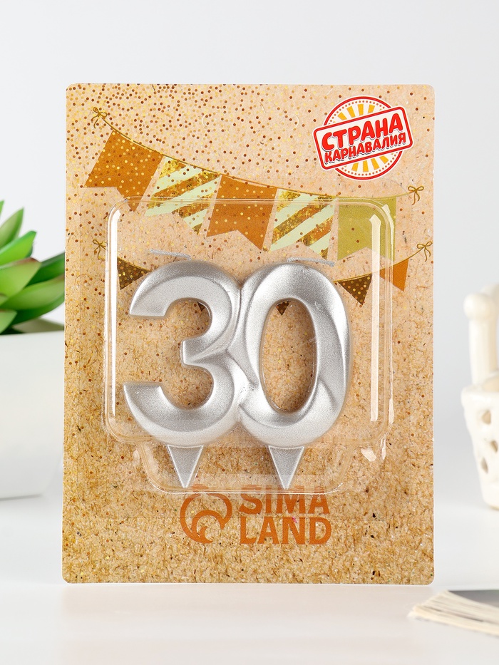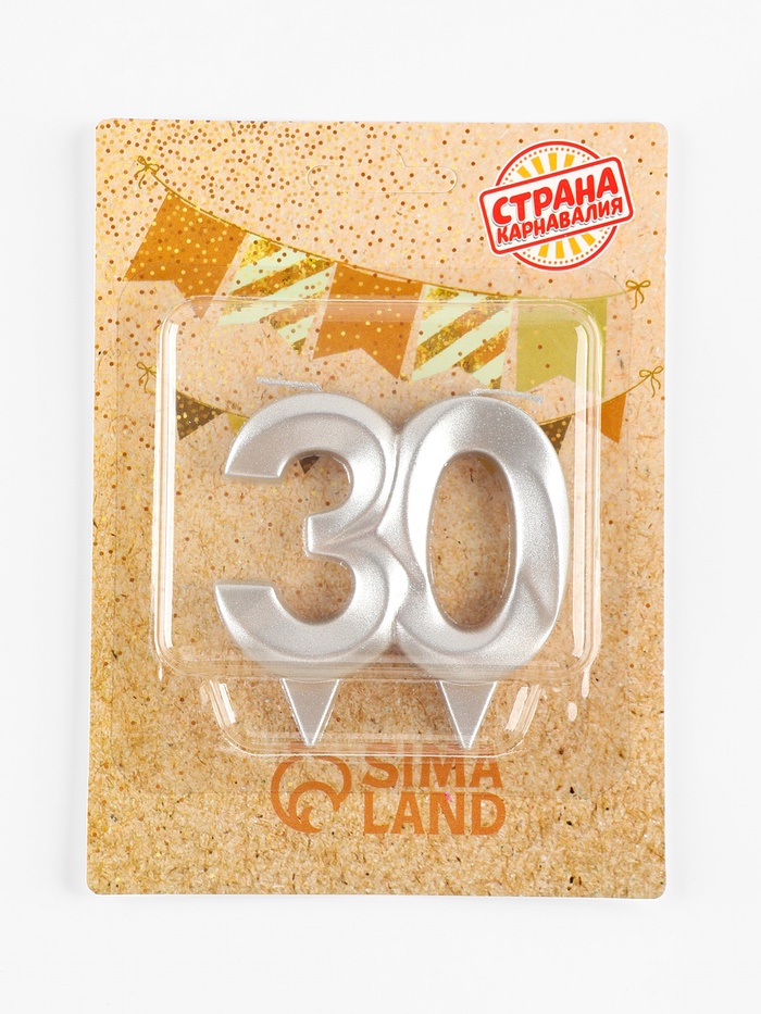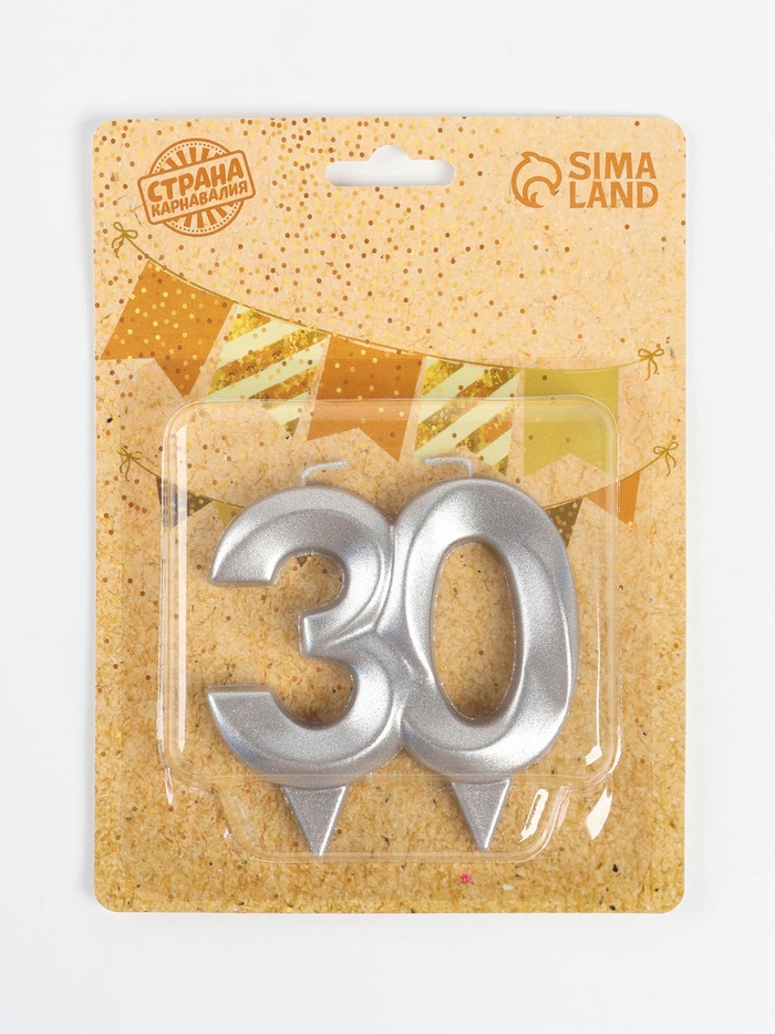 Свеча в торт юбилейная «Грань», цифра 30, серебро, 10 см