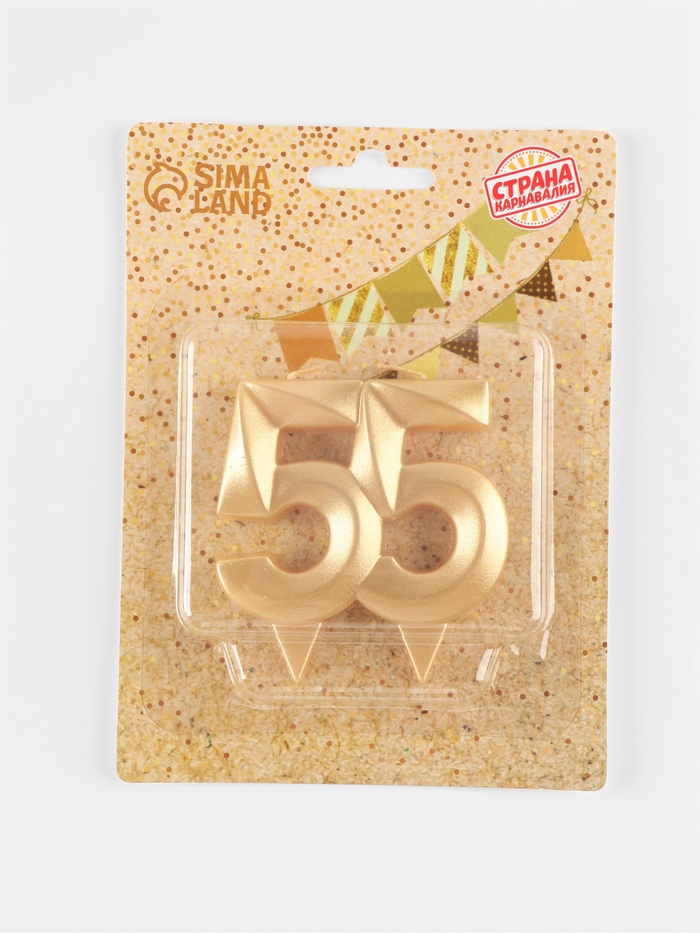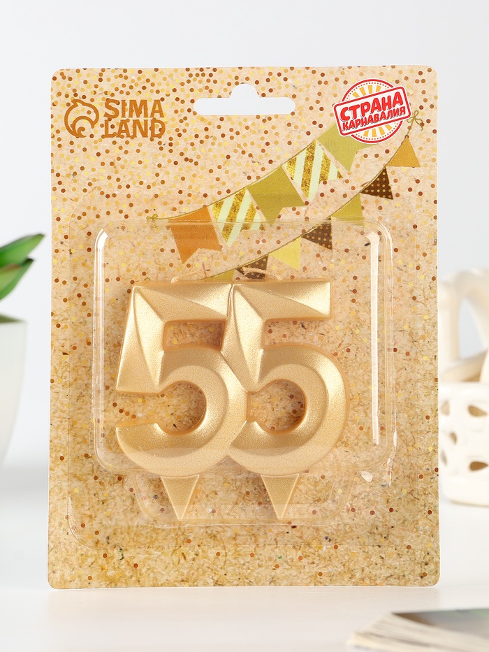 Свеча в торт юбилейная «Грань», цифра 55, золотой металлик, 6.5 см