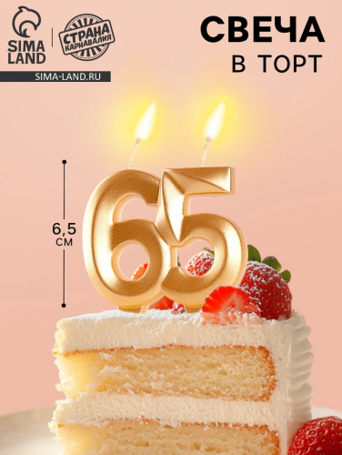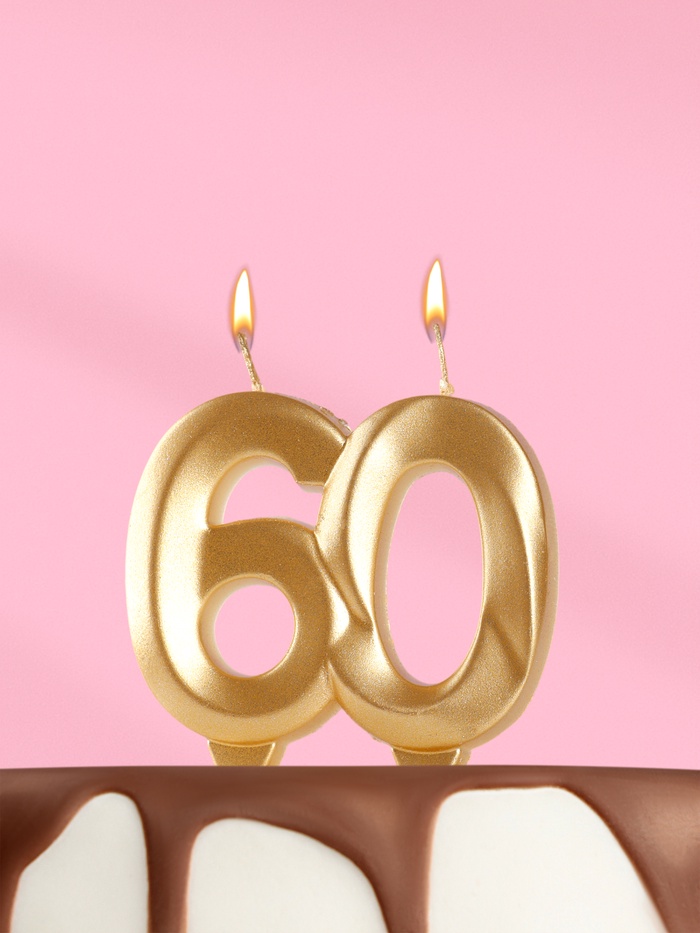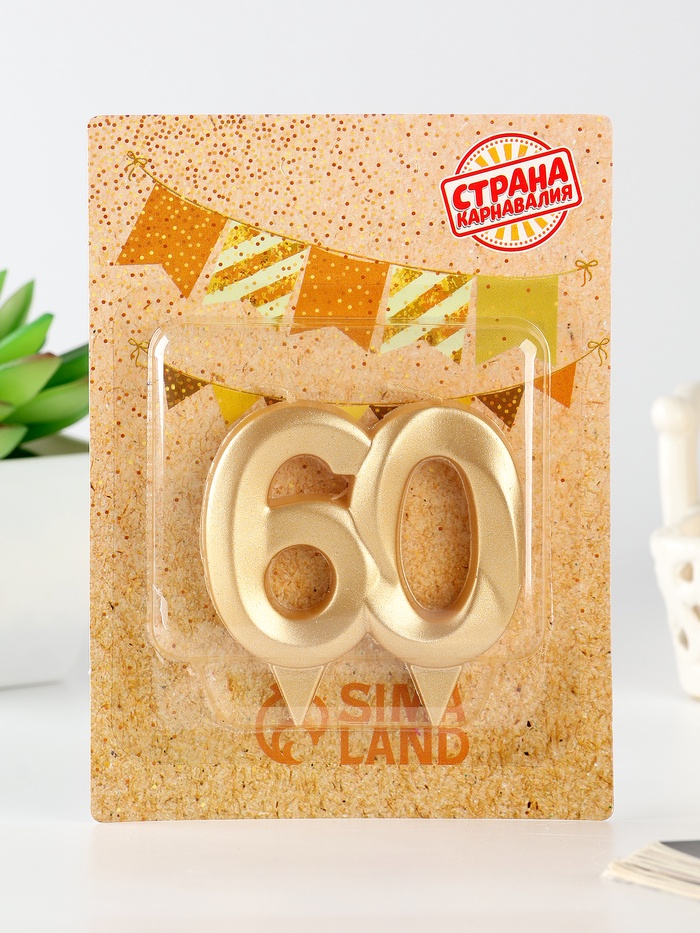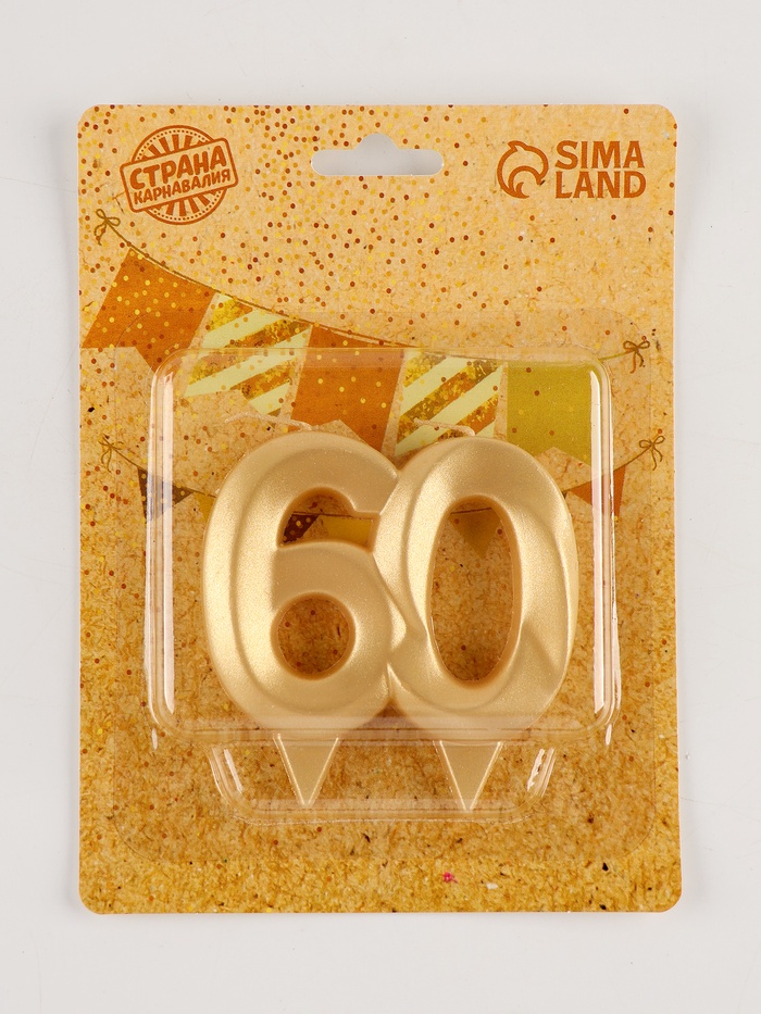 Свеча в торт юбилейная «Грань», цифра 60, золотой металлик, 6.5 см