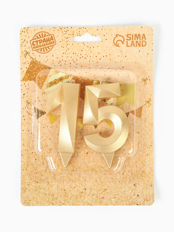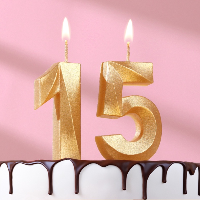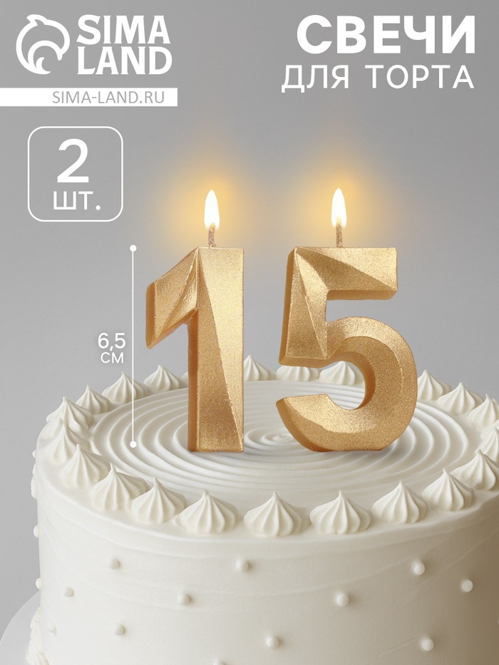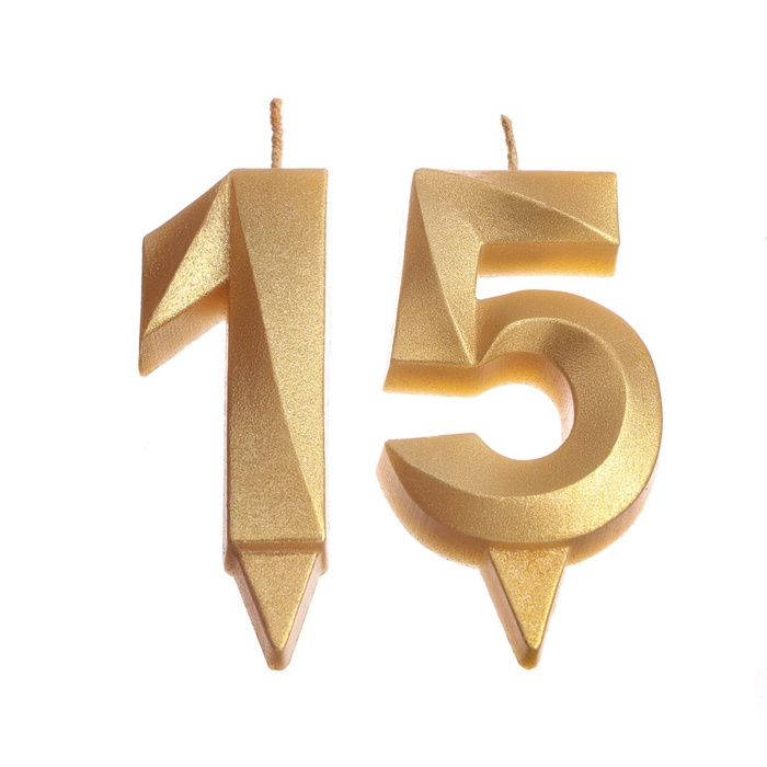 Свеча в торт юбилейная «Грань» (набор 2 в 1), цифра 15, цифра 51, золотой металлик, 6.5 см