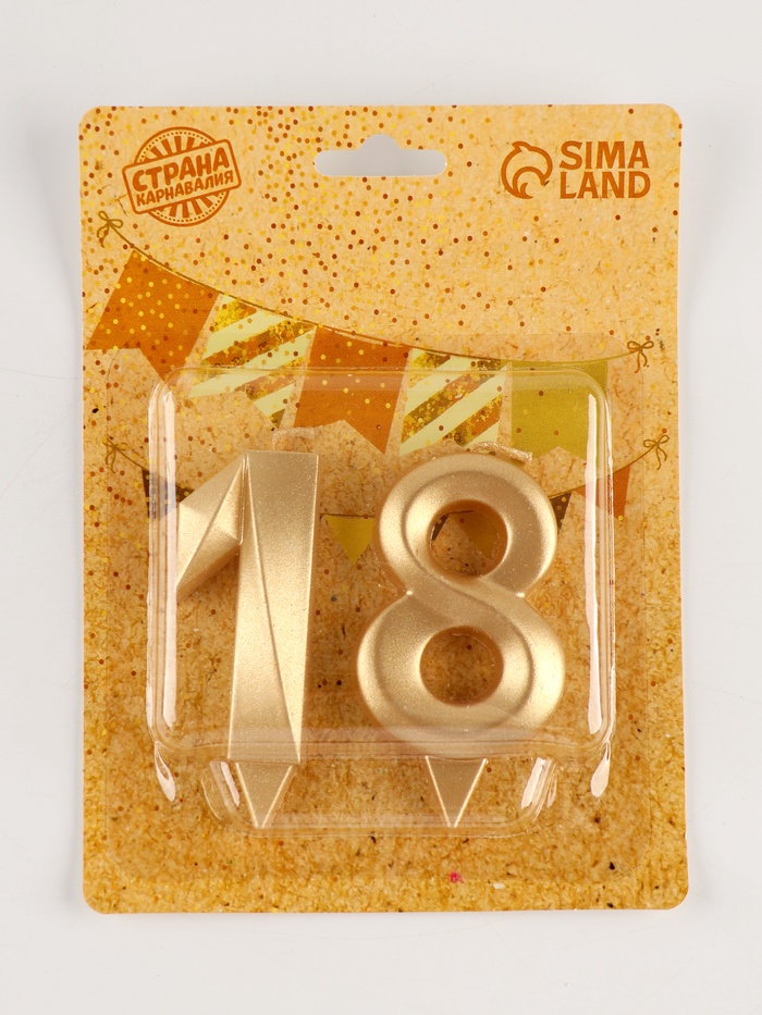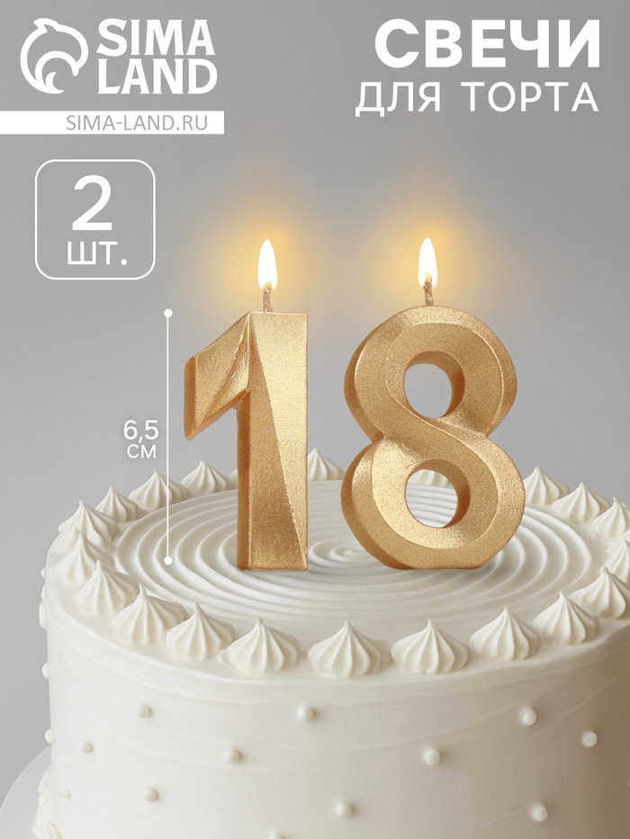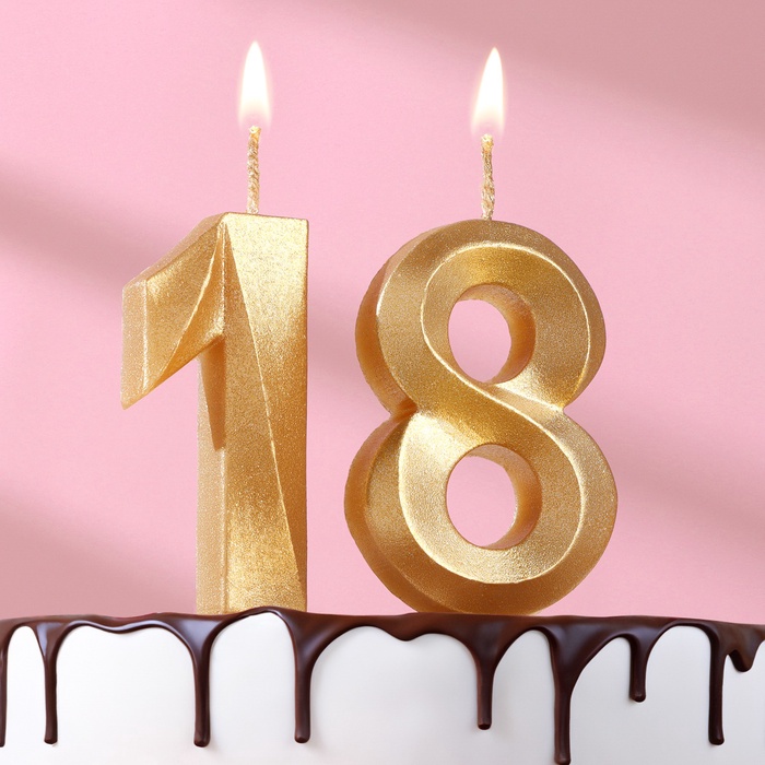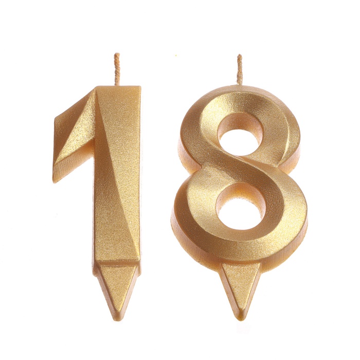 Свеча в торт юбилейная «Грань» (набор 2 в 1), цифра 18, цифра 81, золотой металлик, 6.5 см