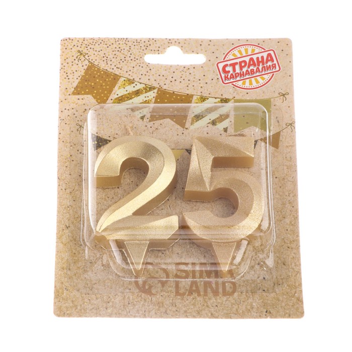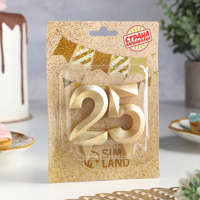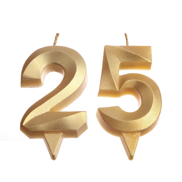 Свеча в торт юбилейная «Грань» (набор 2 в 1), цифра 25, цифра 52, золотой металлик, 6.5 см