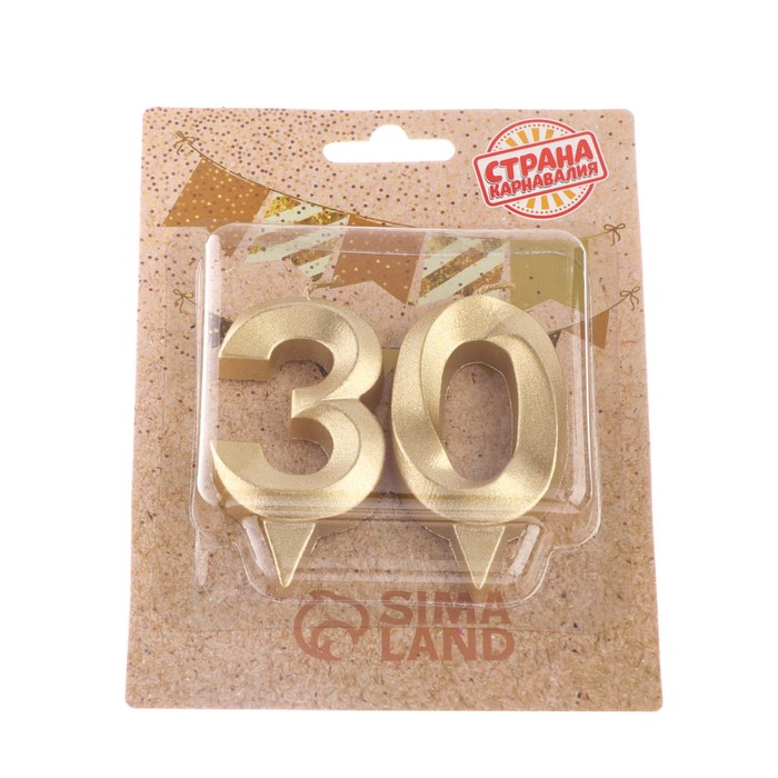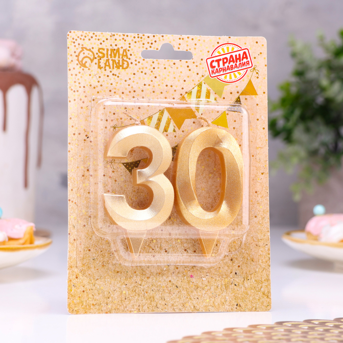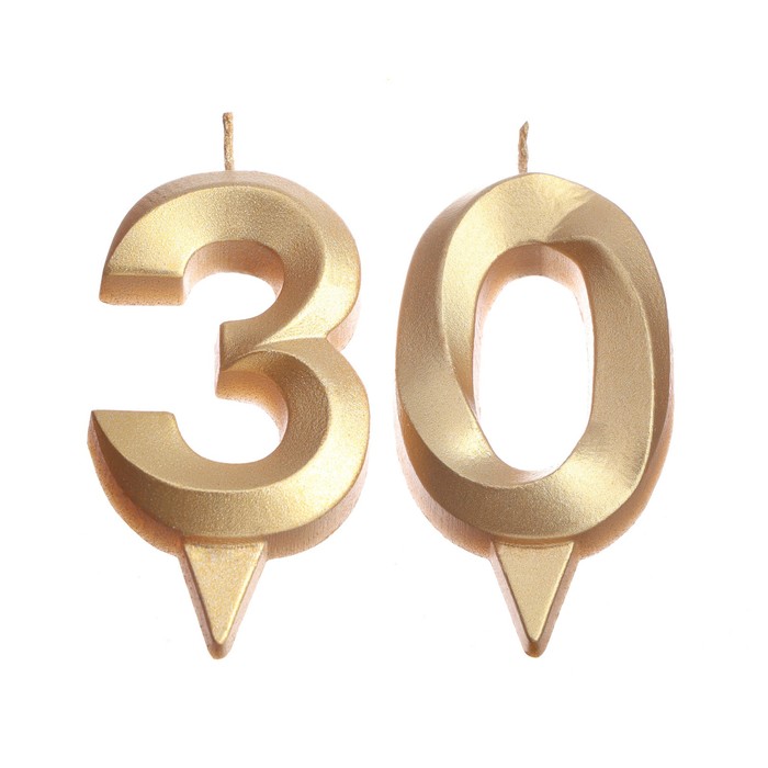 Свеча в торт юбилейная «Грань» (набор 2 в 1), цифра 30, золотой металлик, 6.5 см