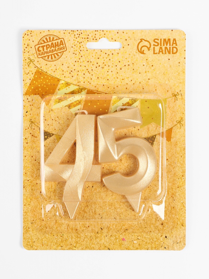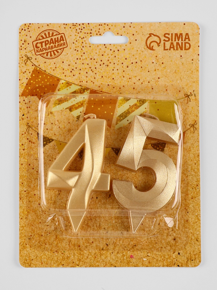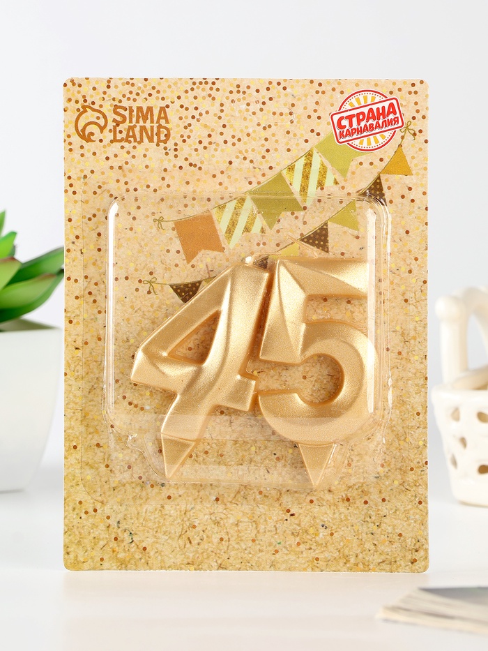 Свеча в торт юбилейная «Грань» (набор 2 в 1), цифра 45, цифра 54, золотой металлик, 6.5 см
