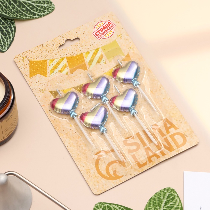 Свечи для торта 5 шт. «Воздушный шарик. Сердца», разноцветные
