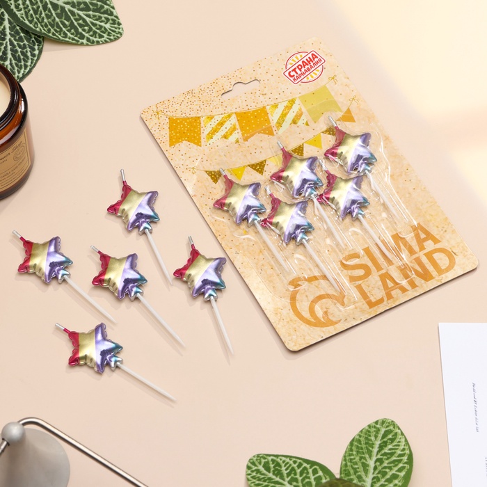 Свечи для торта 5 шт. «Воздушный шарик. Звезда», разноцветные