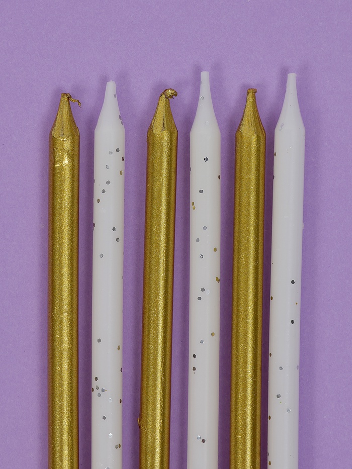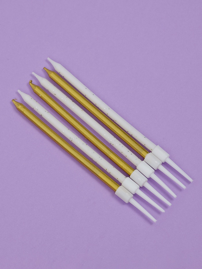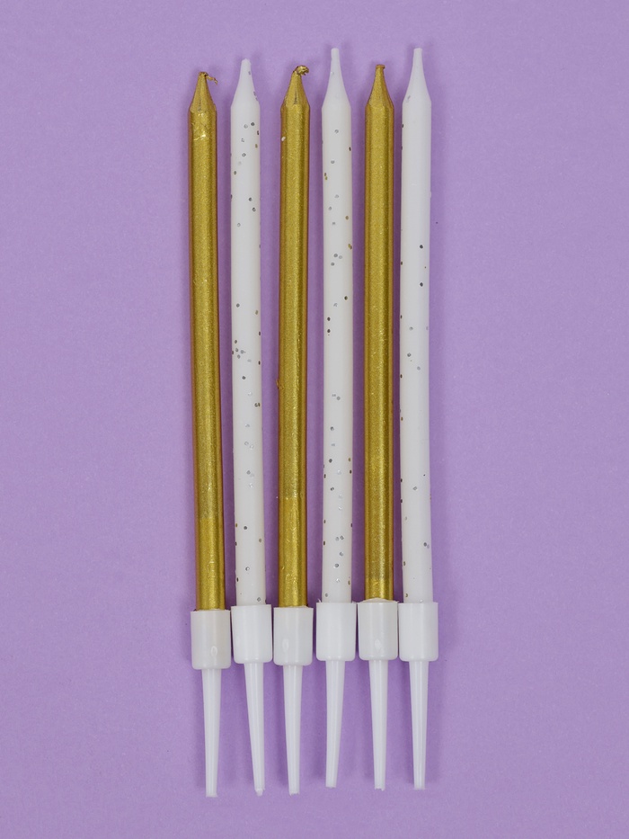 Свечи для торта «Блестящая вечеринка», 6 шт., золотой и белый цвет