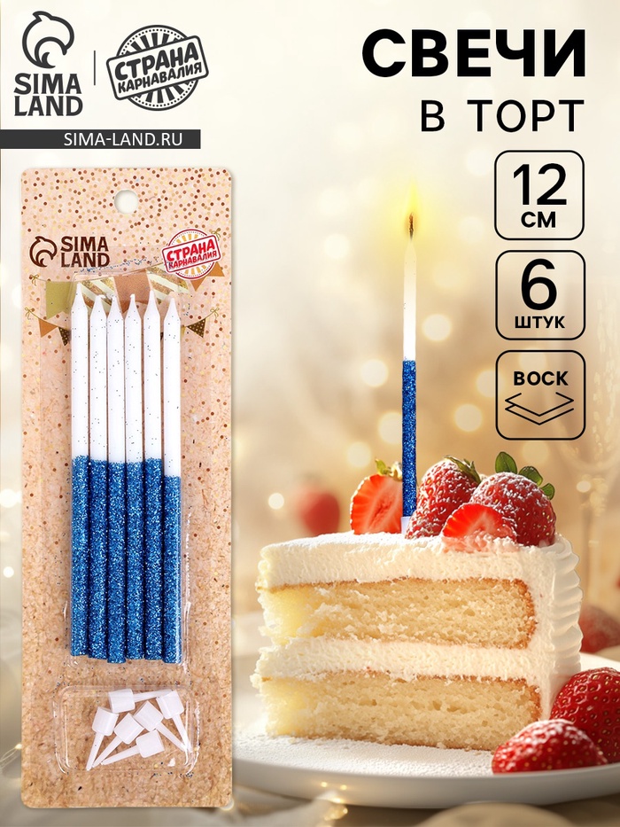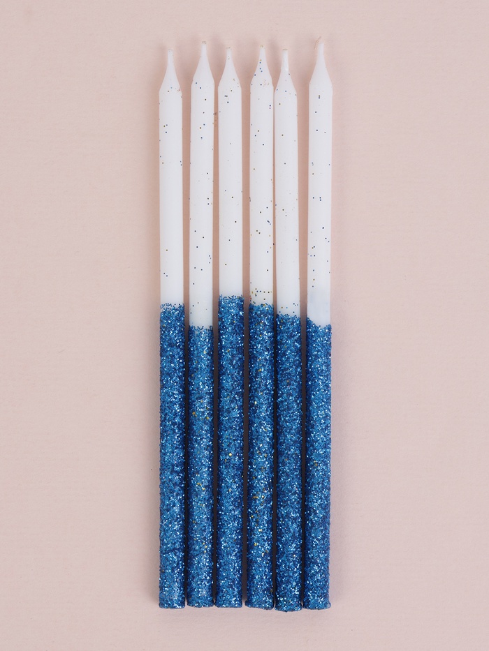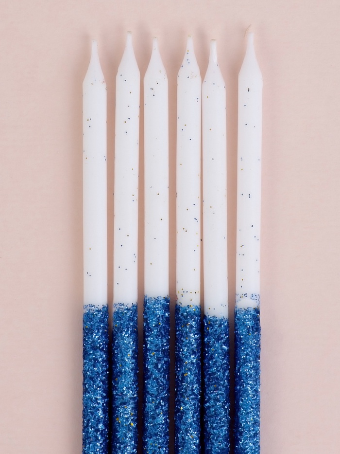 Свечи для торта «Блестящее сияние», 6 шт., белые с голубым