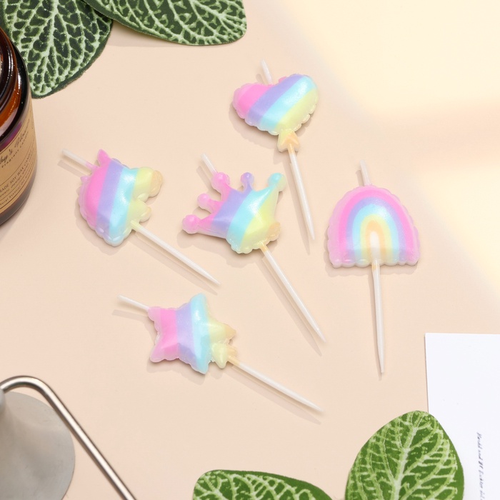 Свечи для торта «Детская радужная вечеринка», 5 шт., разноцветные