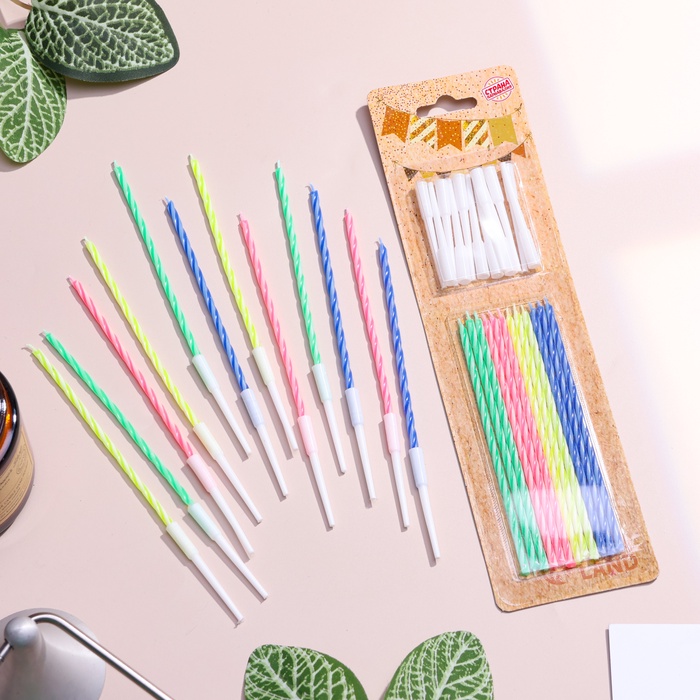 Свечи для торта коктейльные с подставками, 12 см, 12 шт.
