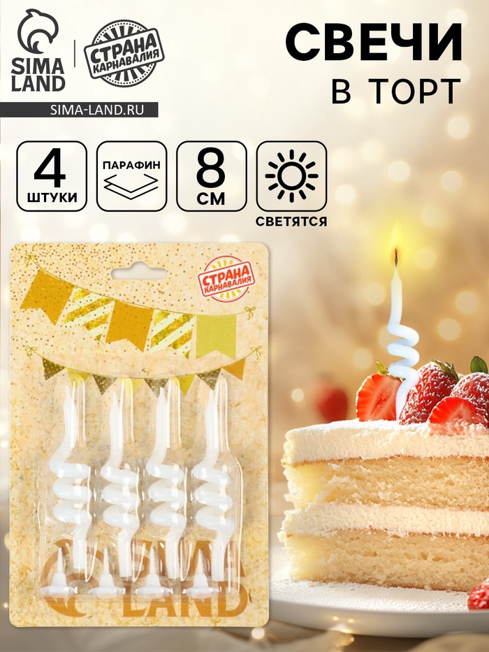 Свечи для торта «Неоновые спирали», 4 шт., светящиеся голубые, 8 см