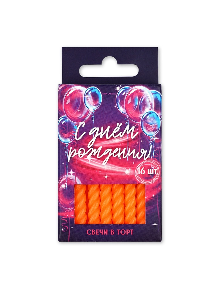 Свечи для торта, оранжевые, 16 шт., 6.5×0.5 см