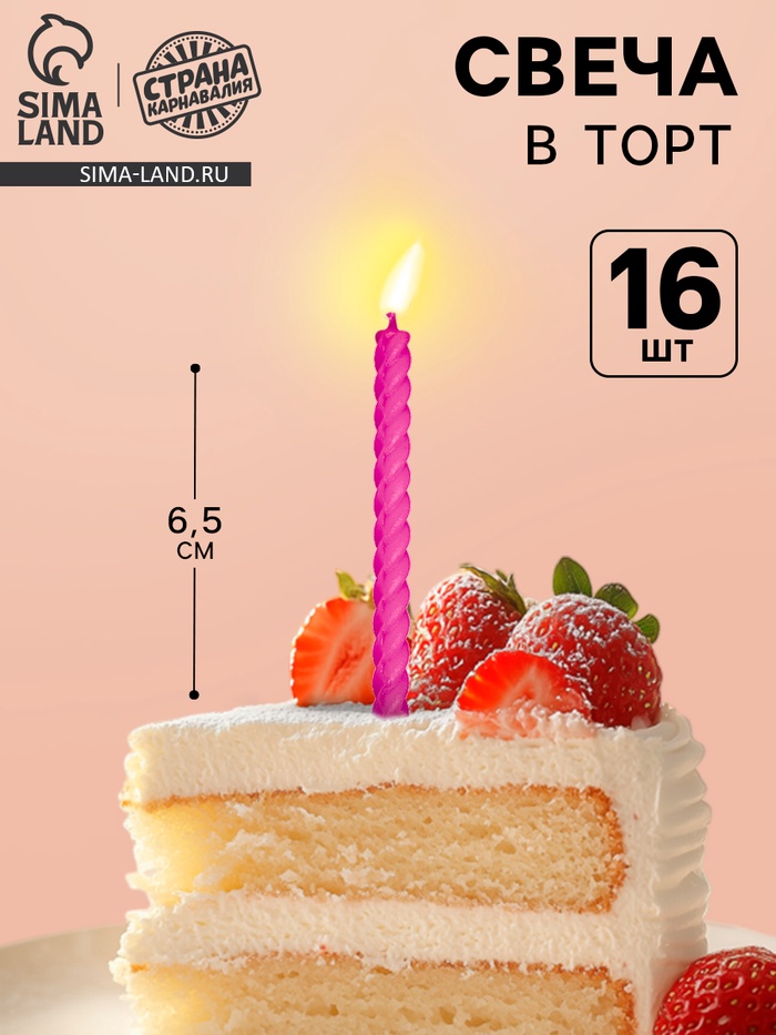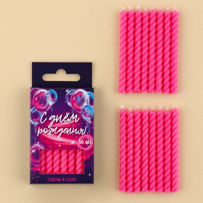 Свечи для торта, розовые, 16 шт., 6.5×0.5 см
