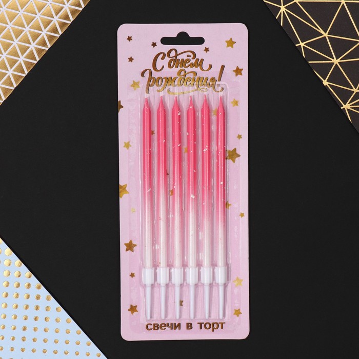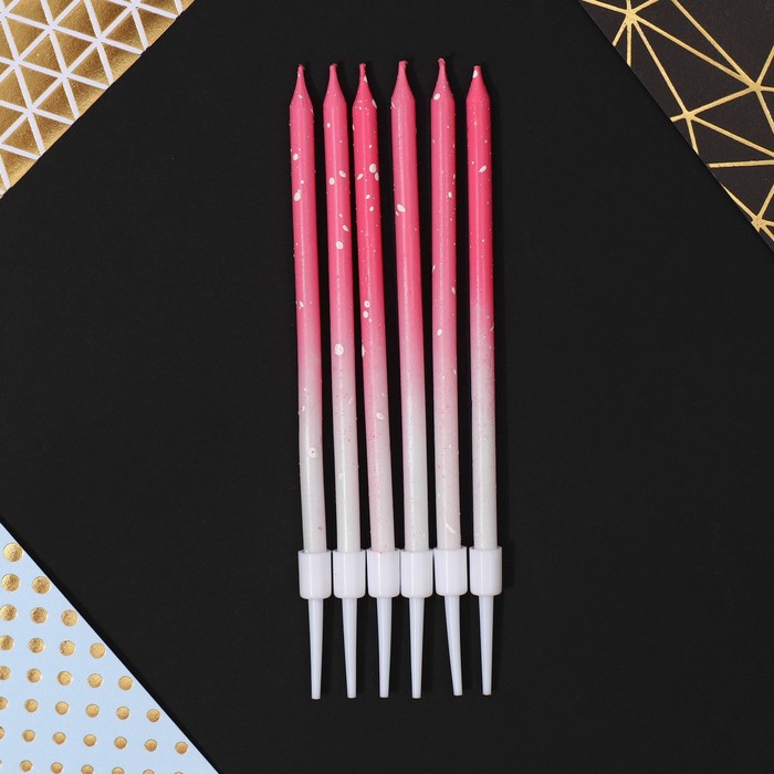 Свечи для торта с блестками, розовый, 6 шт., 13×0.4 см