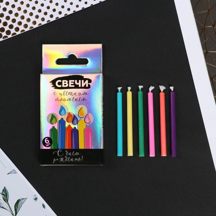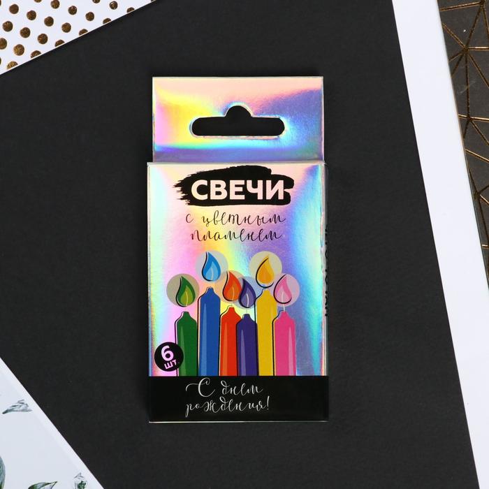 Свечи для торта с цветным пламенем «С Днем Рождения», 6 шт., 6×0.4 см