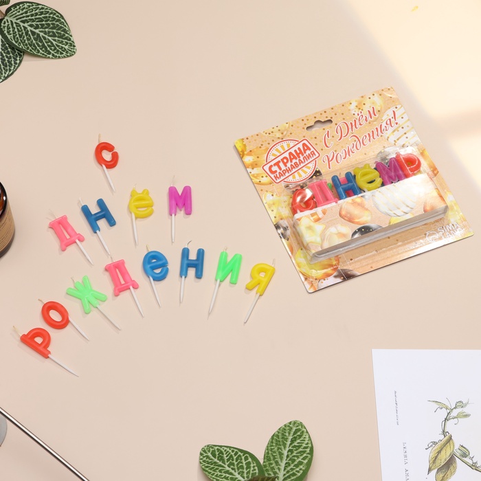Свечи для торта «С Днем рождения», 2.5 см, разноцветные