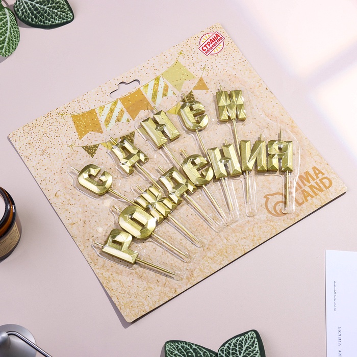 Свечи для торта «С Днём Рождения», золотой