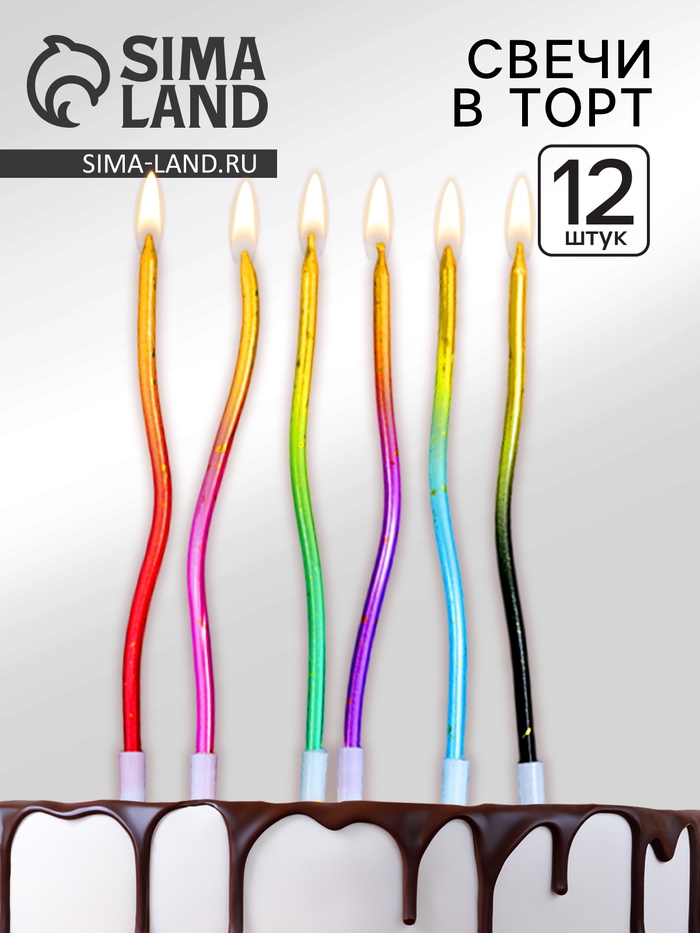 Свечи для торта «Серпантин», 12 шт., разноцветный с блёстками