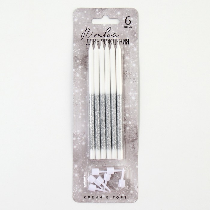 Свечи для торта «В твой день рождения», серебро, 6 шт., 13×0.5 см