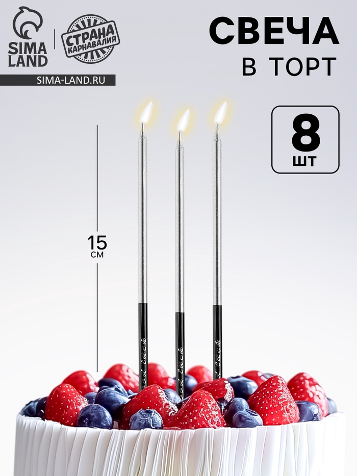 Свечи для торта «В твой особенный день», серебро, 8 шт., 14.9×0.5 см