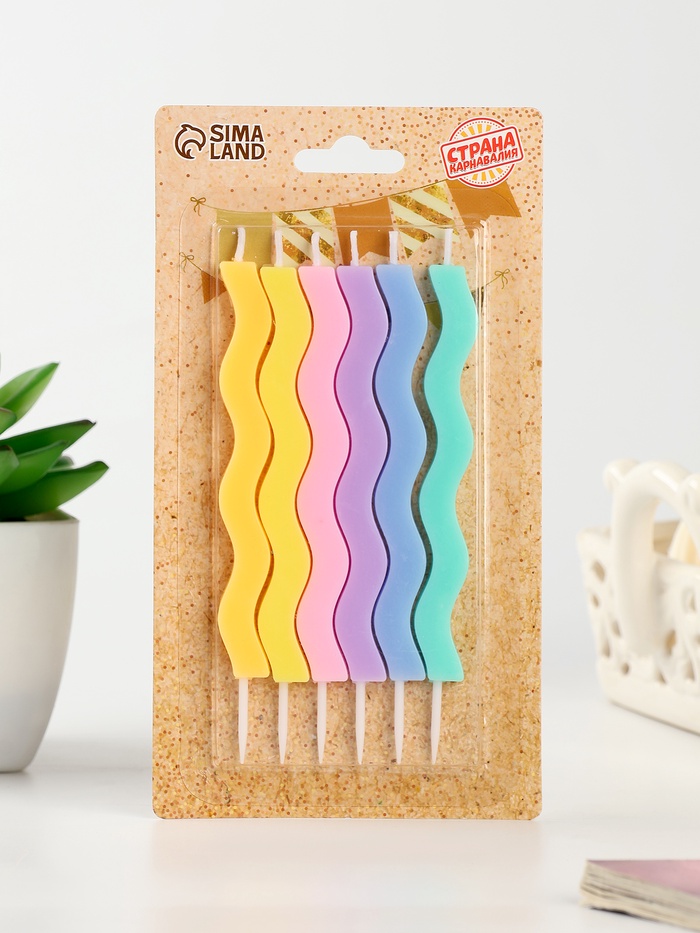 Свечи для торта «Волна», 6 шт., разноцветные