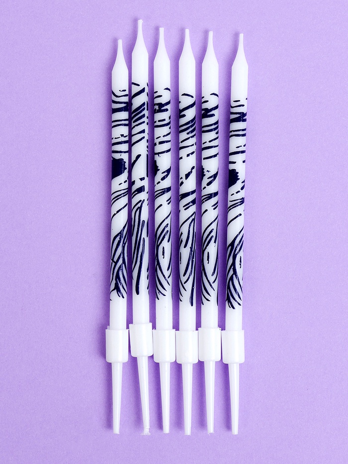 Свечи для торта «Волнистые линии», 6 шт., белый с фиолетовым