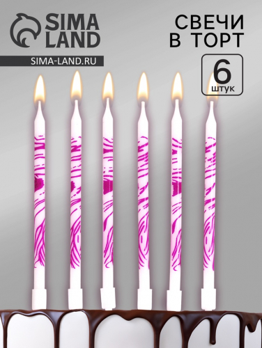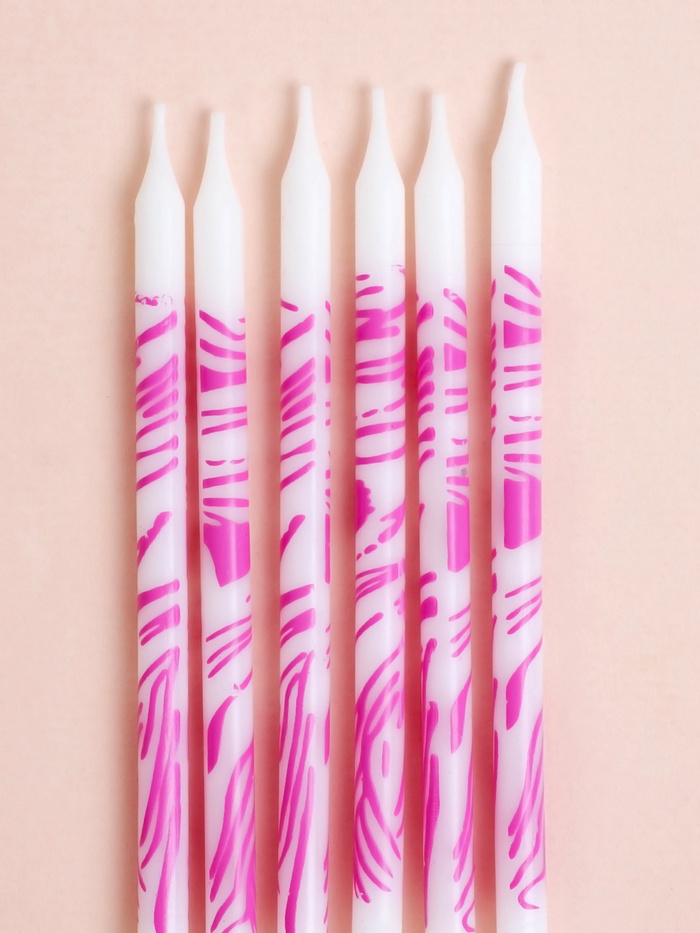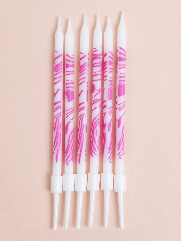 Свечи для торта «Волнистые линии», 6 шт., белый с розовым