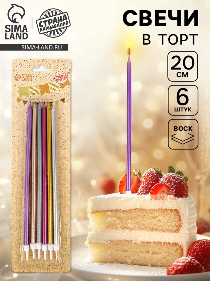 Свечи для торта «Высокий Ройс», 6 шт., разноцветные