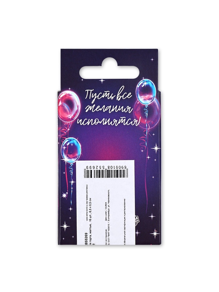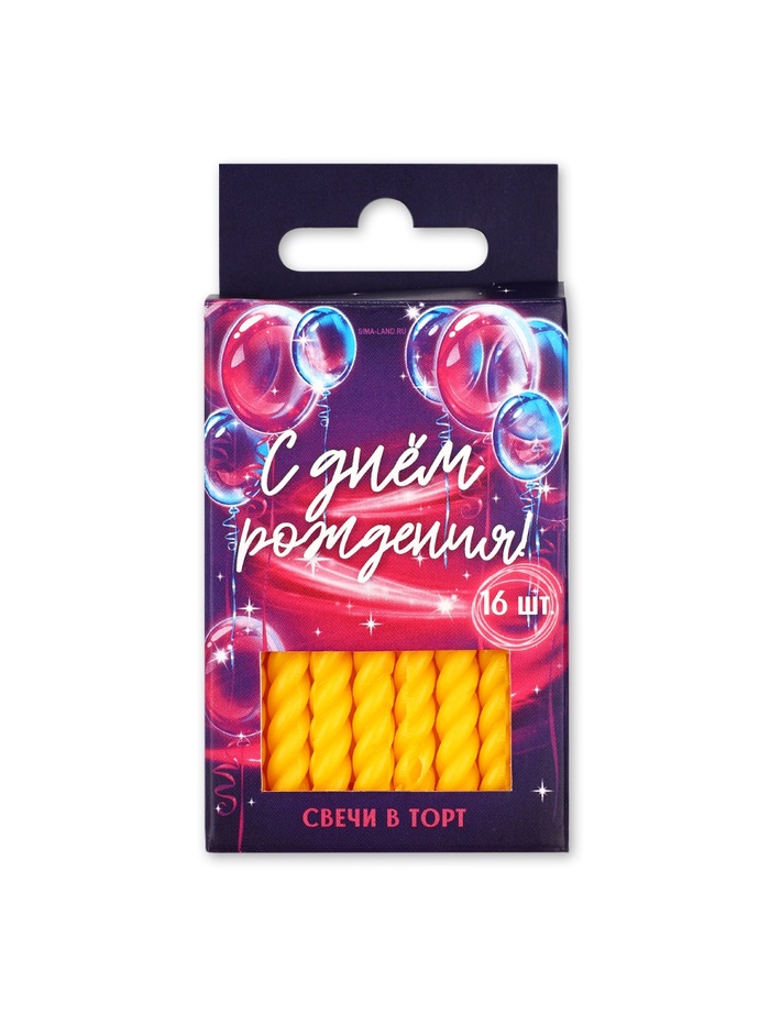Свечи для торта, желтые, 16 шт., 6.5×0.5 см