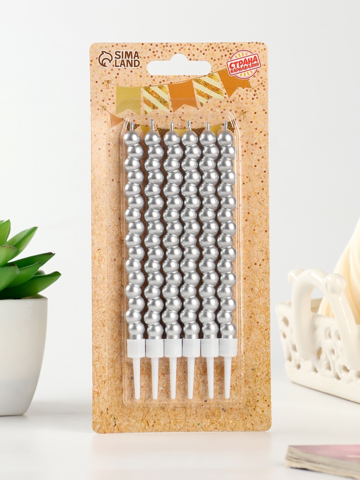 Свечи для торта «Жемчужины», 6 шт., серебряные