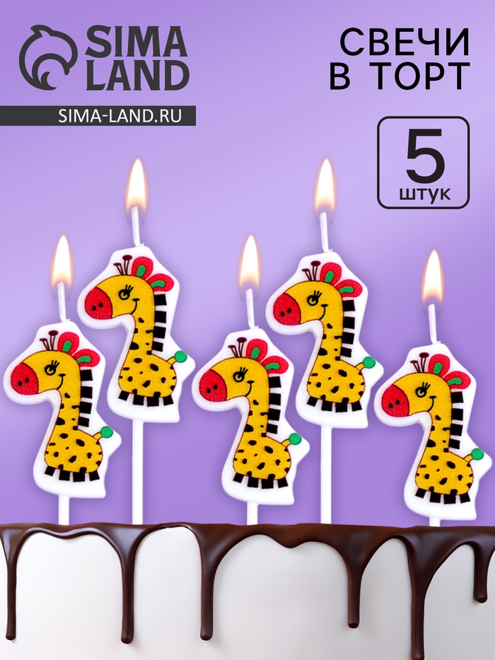 Свечи для торта «Жирафики», 5 шт., желтые