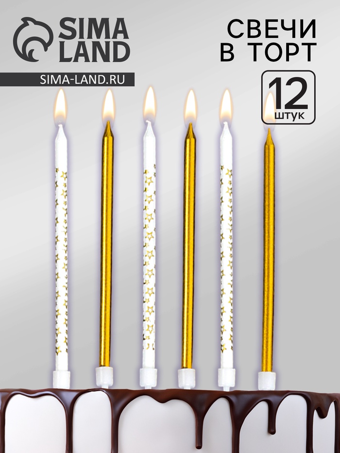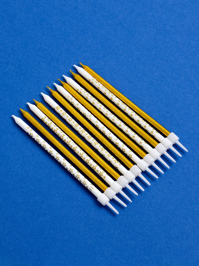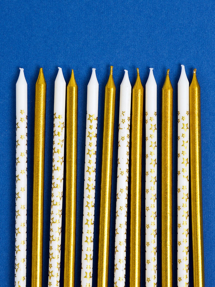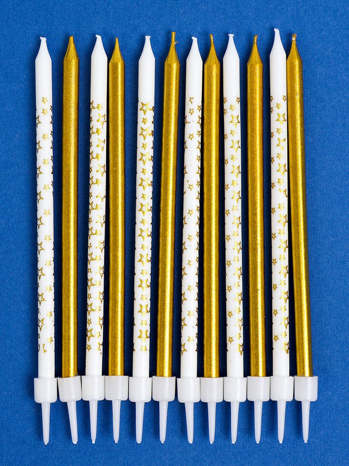 Свечи для торта «Звёздочки», 12 шт. золотой и белый