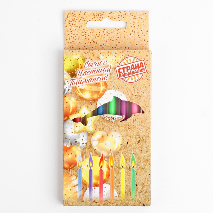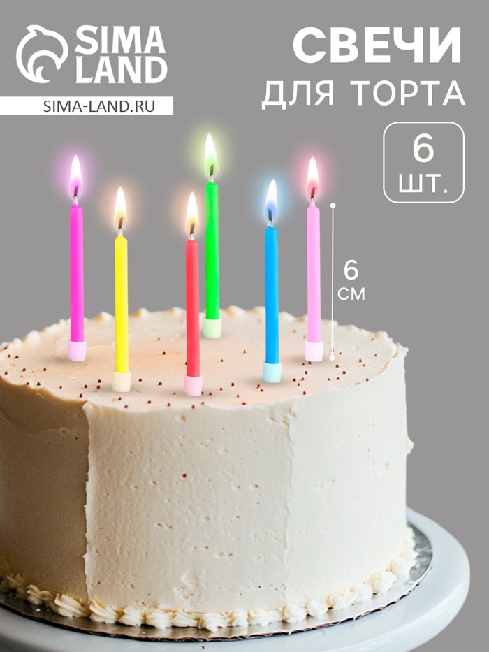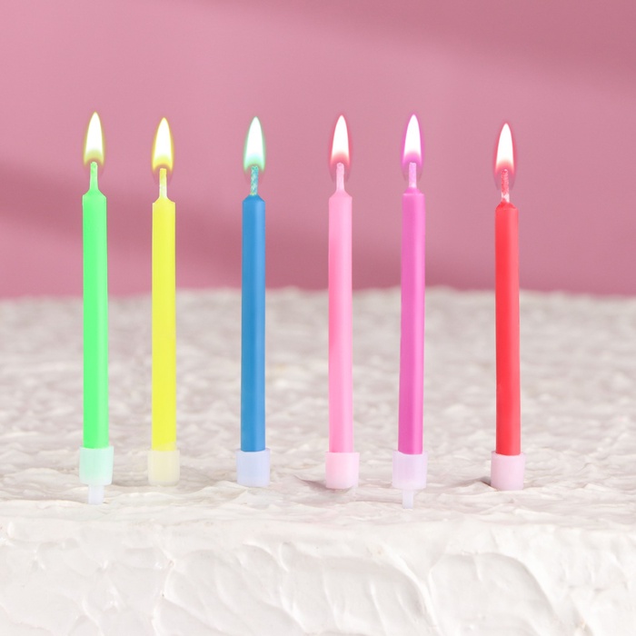 Свечи в торт 6 штук, с цветным пламенем, 6 см