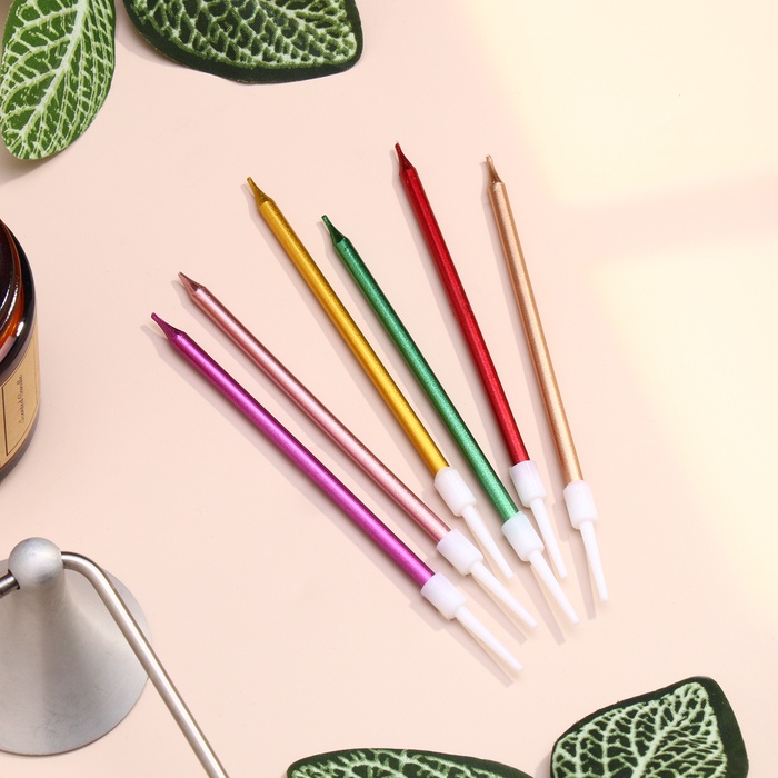Свечи в торт коктейльные «Шайн», 6 шт., 10 см, металлик