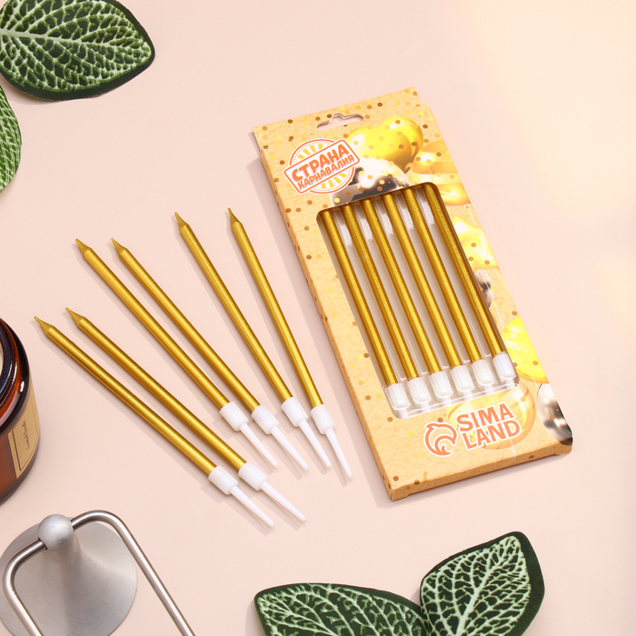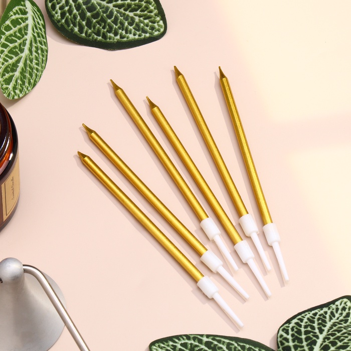 Свечи в торт коктейльные «Шайн», 6 шт., 10 см, золотой металлик