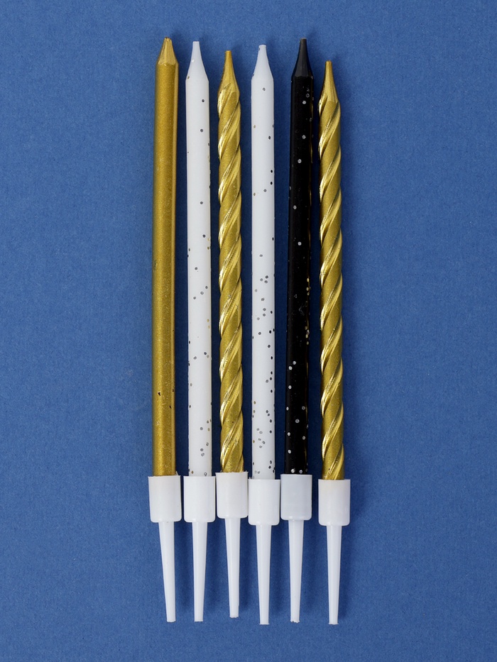 Свечи в торт «Праздничное волшебство», 6 шт., белый, черный, золотой