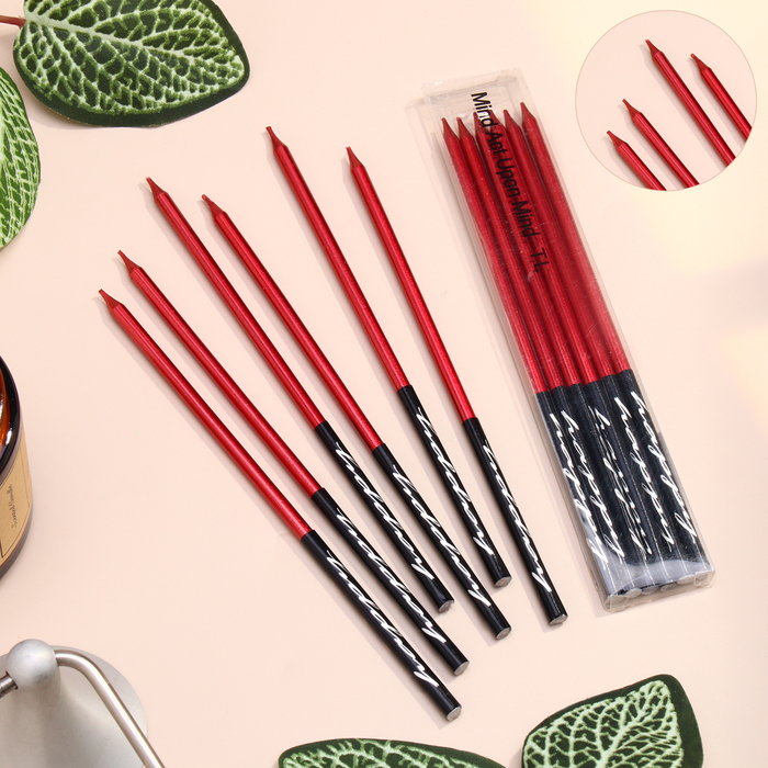 Свечи в торт «Праздник», 6 шт., 14.5 см, красный с чёрным
