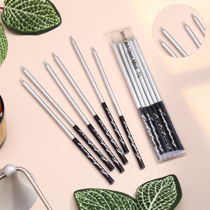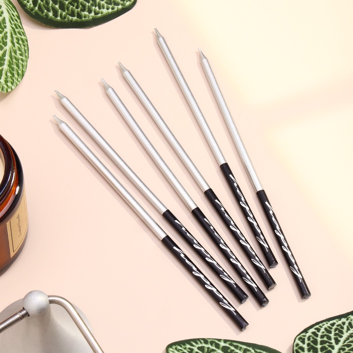 Свечи в торт «Праздник», 6 шт., 14.5 см, серебро с чёрным