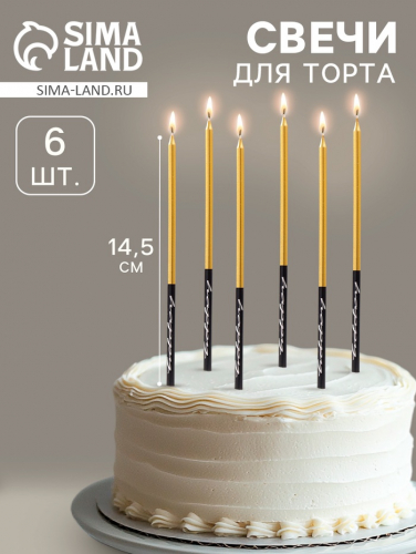 Свечи в торт «Праздник», 6 шт., 14.5 см, золото с чёрным