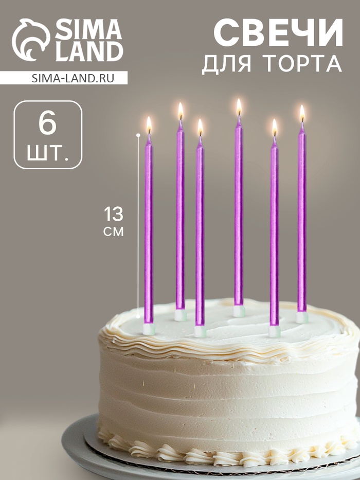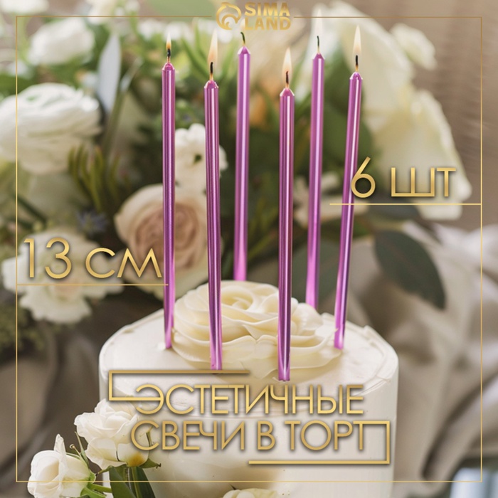 Свечи в торт «Ройс», 6 шт., высокие, 13 см, фиолетовый металлик