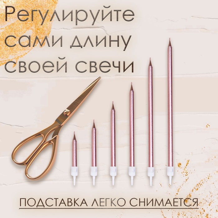 Свечи в торт «Ройс», 6 шт., высокие, 13 см, розовый металлик
