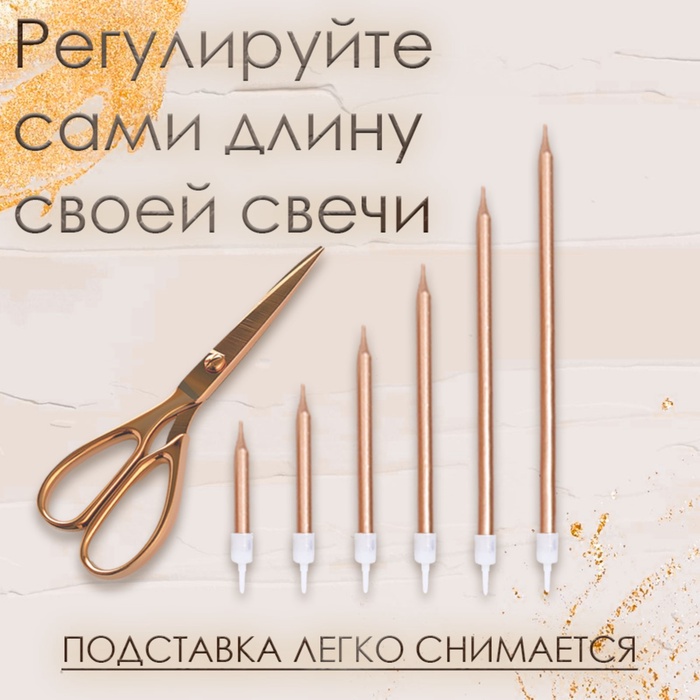 Свечи в торт «Ройс», 6 шт., высокие, 13 см, шампань металлик