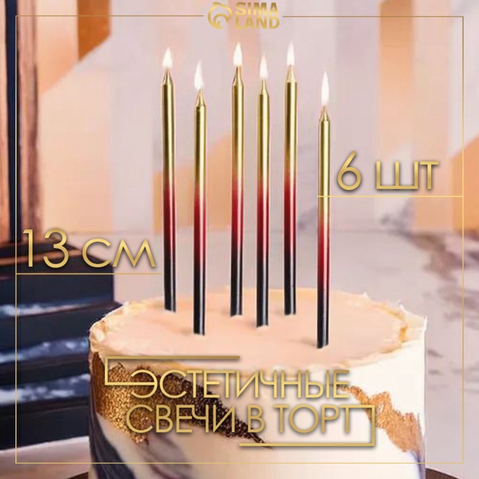 Свечи в торт «Ройс. Градиент», 6 шт., высокие, 13 см, чёрный, бордовый, золотой