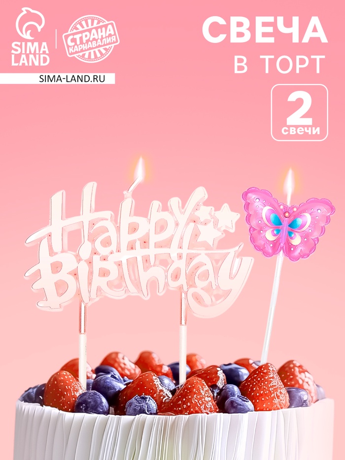 Свечи в торт «С днем рождения», набор 2 шт.