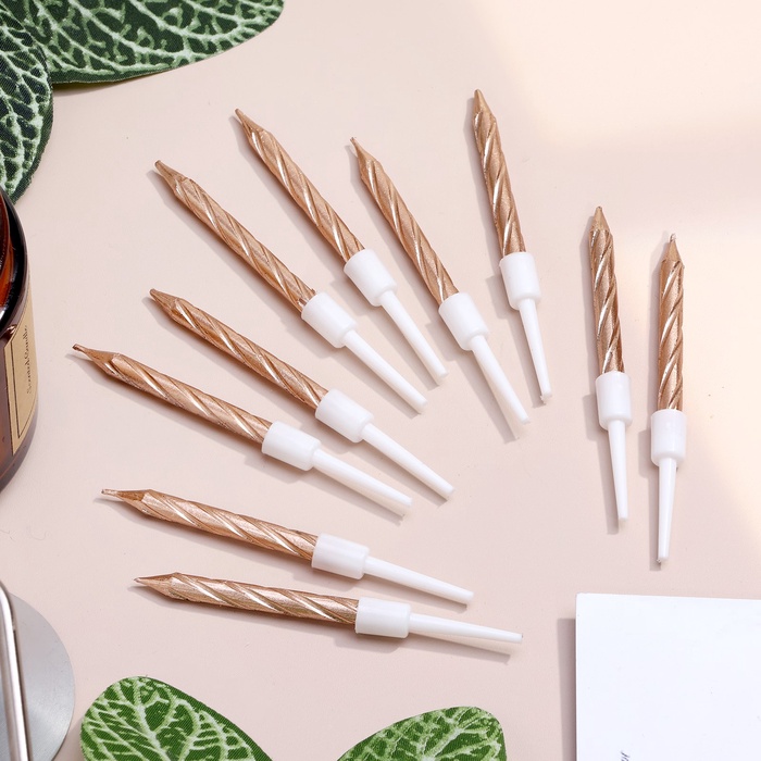 Свечи в торт «Спираль», 10 шт., средние, 5 см, шампань