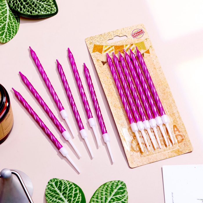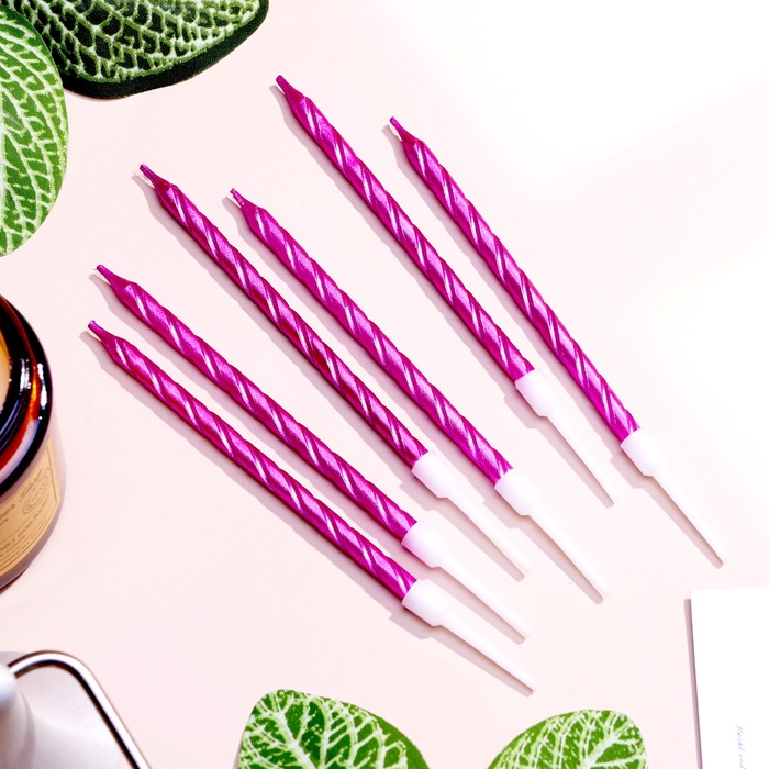 Свечи в торт витые с подставкой, 6 шт., 11 см, фиолетовый