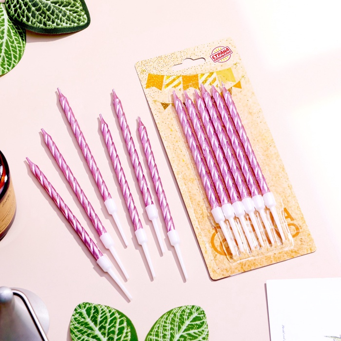 Свечи в торт витые с подставкой, 6 шт., 11 см, розовый блик
